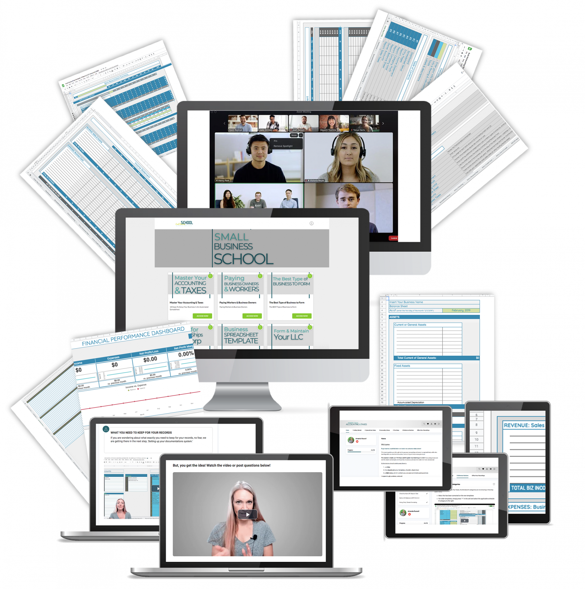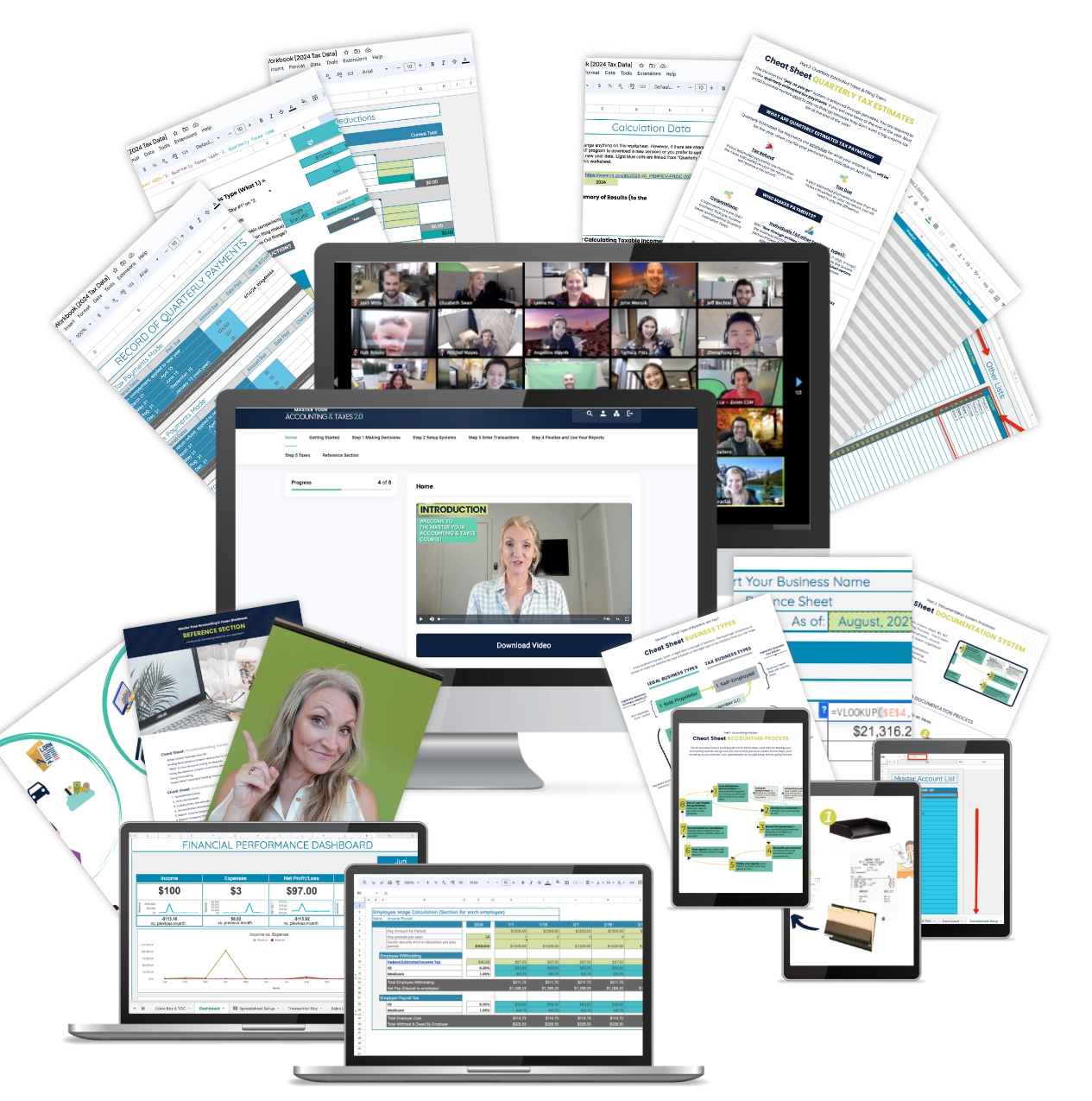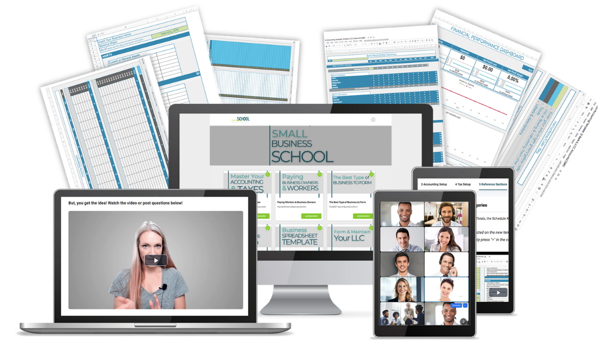 The Master Your Accounting & Taxes video E-course for business owners, which guides you step-by-step through setting up our unique accounting and tax templates. This training is designed for business owners with NO experience.